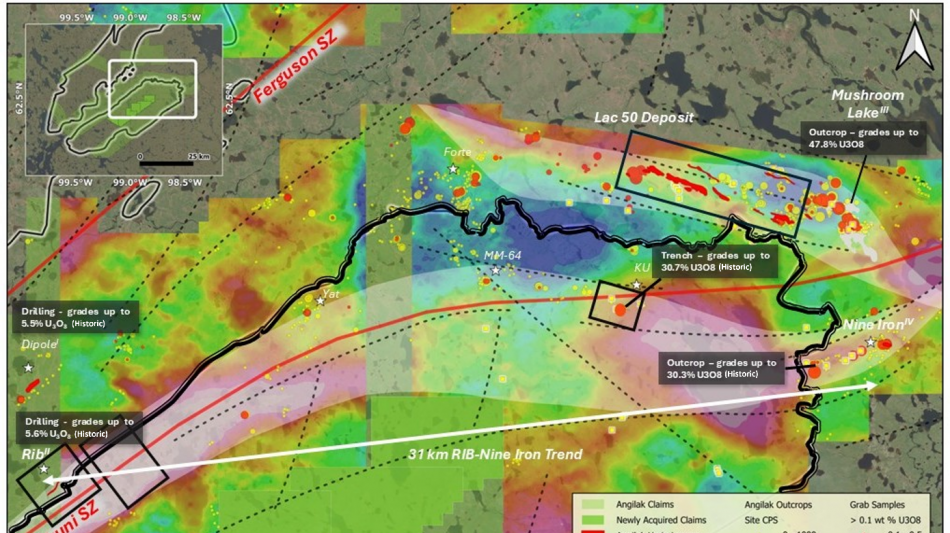 Troy Boisjoli, CEO commented: "We believe Angilak represents one of the most compelling uranium exploration opportunities in the industry. The Company is extremely excited to kickoff its 2025 Angilak exploration program, after a successful 2024 campaign. During the Company's maiden Angilak program we successfully expanded the envelop of mineralization at the Lac 50 Deposit by drilling 25 step out holes, all of which were mineralized and regionally, identified high-grade Athabasca-style potential of the Angikuni Basin. With mobilization complete and modern geophysics underway, we are advancing toward a high-impact drill program targeting shallow, high-grade uranium along the 31-kilometre Rib-Nine Iron corridor. Our goal is clear: to define the kind of discovery that could redefine the region's importance in the global uranium landscape."