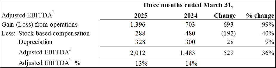 Adjusted EBITDA1 was $2.0 million. Q2 2025 was the Company's eighth consecutive quarter of positive Adjusted EBITDA1.