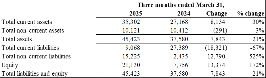 Selected Financial Information for the quarters ended March 31, 2025 and 2024: