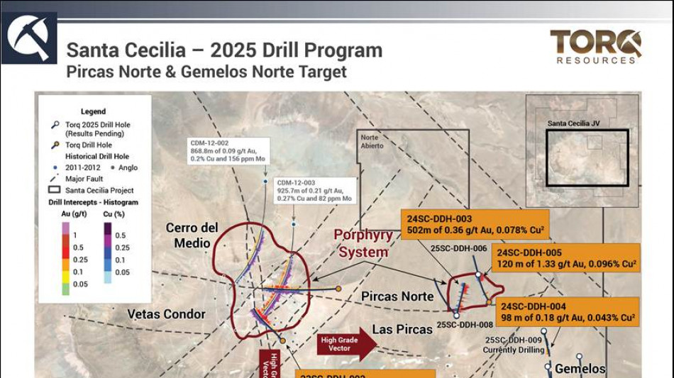VANCOUVER, BC / ACCESS Newswire / May 26, 2025 / Torq Resources Inc. (TSX-V:TORQ)(OTCQB:TRBMF) ("Torq" or the "Company") is pleased to provide an update on its ongoing drilling program at Santa Cecilia.