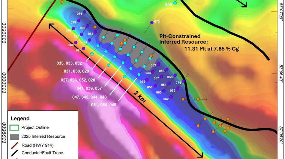 The MRE, with an effective date of April 10, 2025, was prepared following the CIM Definition Standards for Mineral Resources and Reserves (May 2014). It primarily incorporates results from the 2024 summer drill program, which included 20 holes totaling 5,499 m, as well as re-sampled holes from 2016 drill cores (Figure 3, Table1). The 2024 drilling aimed to establish a mineral resource and lay the groundwork for further expansion in future exploration campaigns, including the Company's recent 2025 winter drill program. The Loki Deposit remains open at depth and along strike.