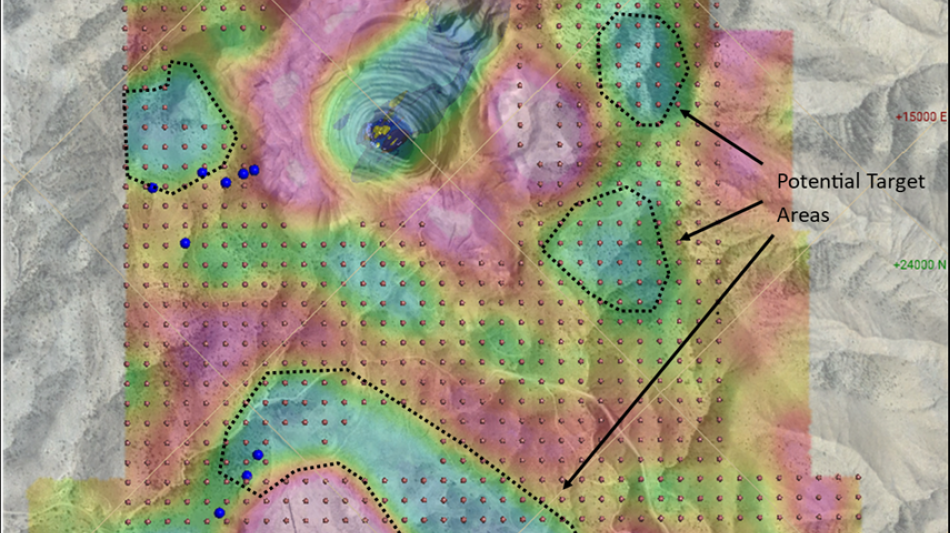 Recent re-examination of 2023 gravity survey data, cross referenced with new geochemical results, shows that gravity low anomalies align with the historically mined North and South breccia pipes and newly identified felsite outcrops located 200-900 meters west and southwest of the previously mined pits. This correlation suggests the presence of additional breccia pipes, which could host further gold mineralization. The data supports an interpretation of the Colosseum deposit as a larger breccia pipe complex, with the mined pipes potentially representing only the upper, eroded portions of a more extensive system.