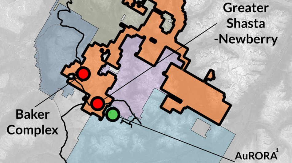 In 2023, TDG defined the 5.5 sq.km Greater Shasta-Newberry exploration target area (news release Jan 25, 2023) which is located directly adjacent to the gold-rich copper porphyry AuRORA1 discovery announced by Freeport McMoran Inc. and Amarc Resources Ltd. (news release Jan 17, 2025).