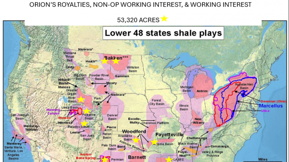 "This recent acquisition should add significant revenue and continues to expand our footprint in great producing oil and gas regions. This is our first entry into the Louisiana oil and gas Haynesville Shale field. Louisiana ranks third in the nation for natural gas production and this property fits into Orion's strategic growth strategy. " Commented Tom Lull, CEO of Orion. The demand for natural gas is increasing with AI data centers and LNG exports. Orion owns properties and mineral interest from the Bakken Shale of North Dakota to the Haynesville Shale of Louisiana. Orion now owns 53,320 mineral acres in the Bakken, Permian Basin, Piceance Basin, Arkoma Basin, Eagle Ford, Haynesville Shale, and Scoop Stack of Oklahoma. "