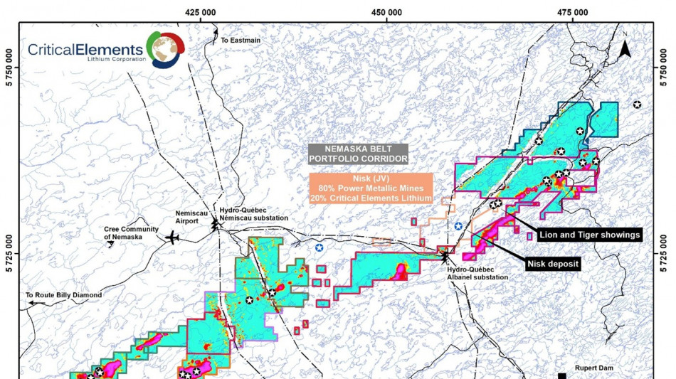 MONTRÉAL, QC / ACCESS Newswire / June 23, 2025 / Critical Elements Lithium Corporation (TSX-V:CRE)(OTCQX:CRECF)(FSE:F12) ("Critical Elements" or the "Corporation") is pleased to announce that the VTEM survey completed during spring 2025confirmed the presence of multiples electromagnetic conductors on its 100%-owned Nemaska Belt properties (Figures 1).