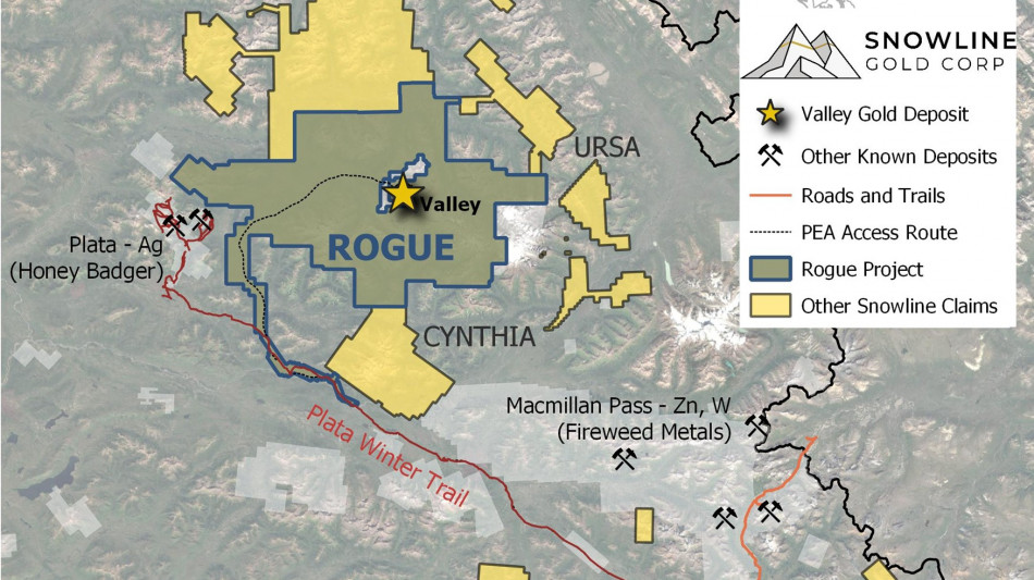 VANCOUVER, BC / ACCESS Newswire / June 23, 2025 / SNOWLINE GOLD CORP. (TSXV:SGD)(OTCQB:SNWGF) (the "Company" or "Snowline") is pleased to announce results from its Preliminary Economic Assessment ("PEA" or the "Study") for its Valley gold deposit ("Valley") on its 100%-owned Rogue Project in Canada's Yukon Territory. The PEA is a conceptual study of the potential economic viability of Valley's mineral resources and the first economic assessment of any kind on the broader Rogue Project. The Rogue Project and broader infrastructure work considered by this PEA overlaps with Traditional Territories of the First Nation of Na-Cho Nyäk Dun, the Ross River Dena Council and Kaska Nation.