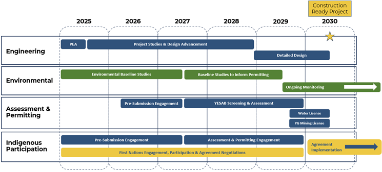 The next technical study is expected to be a pre-feasibility study ("PFS") for the Rogue Project, focused on Valley. Fieldwork to support a PFS has recently commenced, and will include geotechnical drilling, groundwater characterization and monitoring, surface material characterization supported by lidar surveying and sonic drilling, and broader geochemical characterization of geological materials. Drilling is also underway at Valley that is planned to convert current inferred mineral resources to indicated mineral resources or higher, so that they may be considered in a PFS.