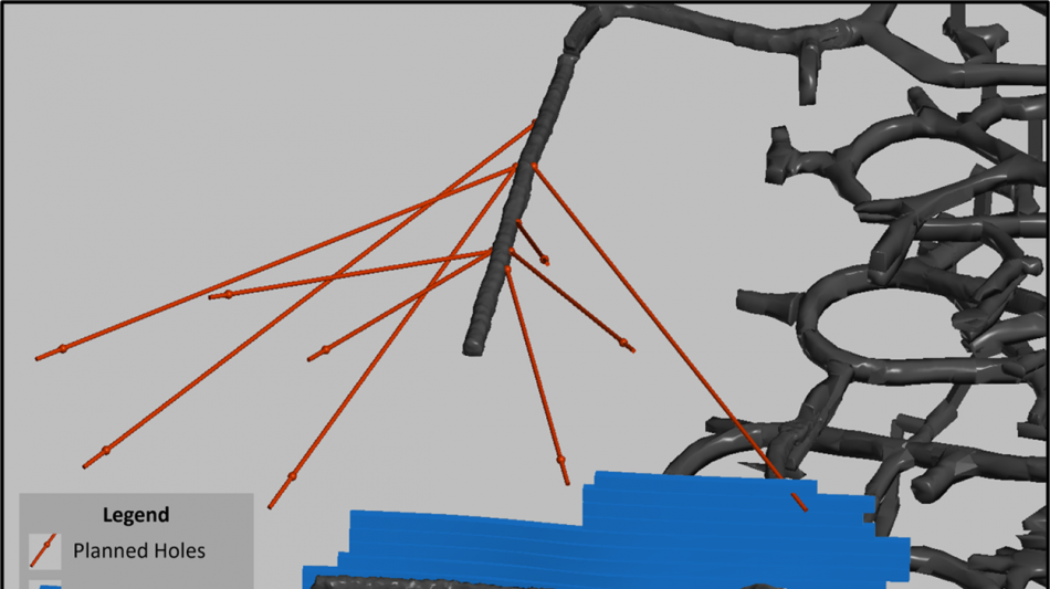 Figure 5: Underground Drill Plans from the 888 Attack Ramp Testing the H-Vein Updip and to the North