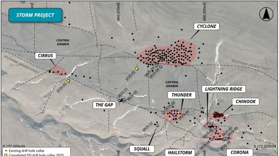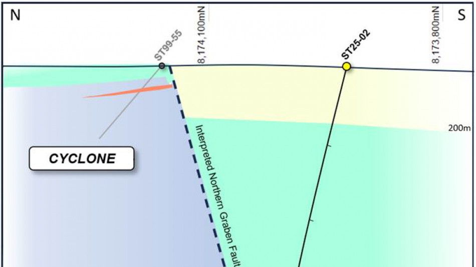 The first diamond drill hole, ST25-02, has been completed for the 2025 program and was designed to test the Cyclone Deeps target within the Central Graben area. The drill hole aimed to follow up earlier intersections of high-grade copper mineralization and to build further evidence for the large-scale copper potential at depth.
