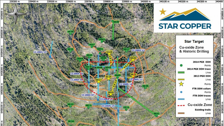 Figure 1 - Star Target Cu-oxide zone & historic drilling. Star Copper 2025