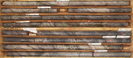 Mineralization is hosted in sub-horizontal quartz-sulphide veins, with densities varying between 1 and 3 veins per meter. These veins contain traces to massive aggregates of arsenopyrite, bismuthinite, pyrite, and pyrrhotite. Three holes have been completed as part of the first ever drill campaign done on this target (1,456 m). Rare, trace instances of visible gold have been identified within quartz veins in each hole. Assays are pending for all holes at JP.