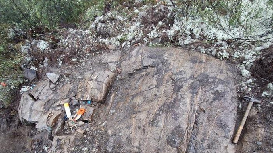 AU-25-007 didn't reach its target depth due to operational problems. The drilled bedrock interval (between 80 and 150 meters) contains two sets of veins, all of them with minor to trace pyrrhotite, pyrite, arsenopyrite, bismuthinite, and molybdenite. Vein density ranges between 2 to 5 veins per meter. A follow-up hole is planned before the end of the season to further test this newly-discovered instance of intrusion-hosted sheeted quartz veins.