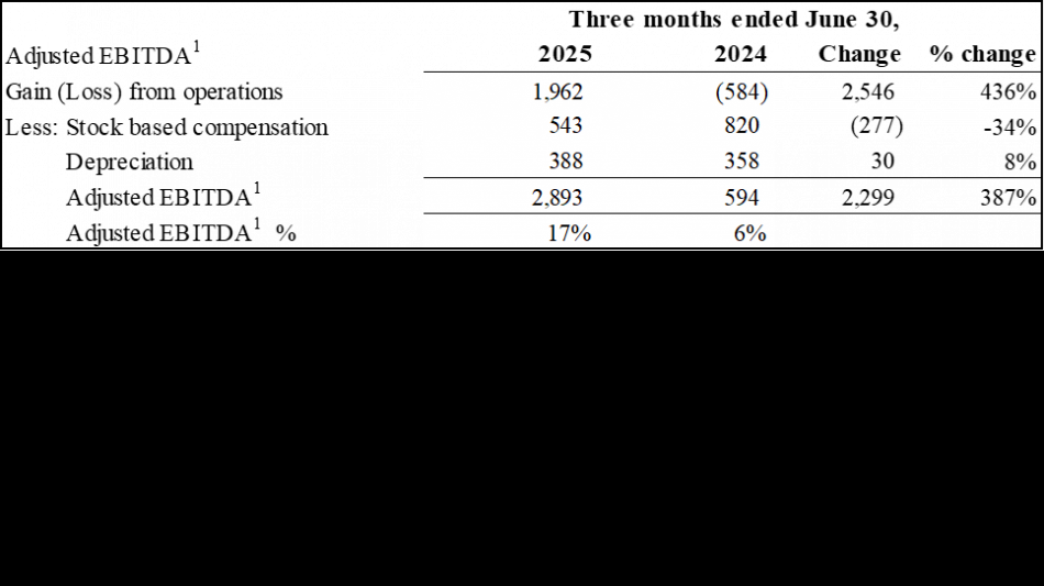 1 Non-IFRS Measure: Adjusted EBITDA is defined as income/(loss) from operations, plus stock-based compensation costs and depreciation and amortization costs. Adjusted EBITDA does not have a standardized meaning under IFRS. Therefore it is unlikely to be comparable to similar measures presented by other issuers. Management believes that certain investors and analysts use adjusted EBITDA to measure the performance of the business and is an accepted measure of financial performance in our industry. It is not a measure of financial performance under IFRS, and may not be defined and calculated in the same manner by other companies and should not be considered in isolation or as an alternative to IFRS measures. The most directly comparable measure to Adjusted EBITDA calculated in accordance with IFRS is income (loss) from operations.
