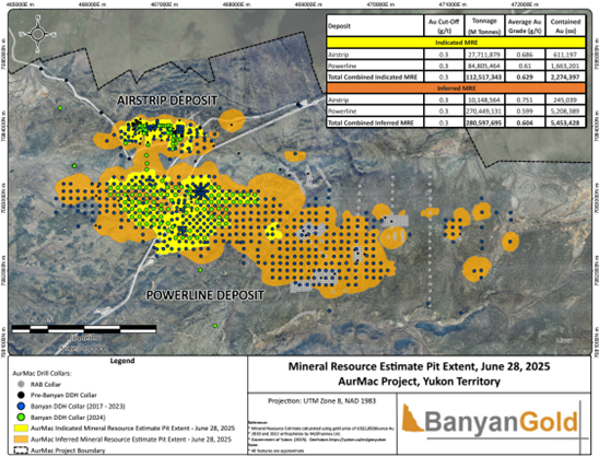 VANCOUVER, BC / ACCESS Newswire / August 20, 2025 / Banyan Gold Corp. (the "Company" or "Banyan") (TSX-V:BYN)(OTCQB:BYAGF) announces the filing of the Technical Report to support the updated Mineral Resource Estimate ("MRE") in accordance with the Canadian Institute of Mining, Metallurgy and Petroleum ("CIM") Definition Standards incorporated by reference in National Instrument 43-101 ("NI 43-101") for the AurMac Project (the "AurMac Property or "AurMac"). The Technical Report titled "Technical Report, AurMac Property, Mayo Mining District, Yukon Territory, Canada" and dated August 20, 2025, was prepared by Marc Jutras, P.Eng., M.A.Sc., Principal, Ginto Consulting Inc., Tysen Hantelmann, P.Eng., of JDS Energy & Mining Inc. and Deepak Malhotra, PhD., of Forte Dynamics. The Technical Report is available for review on SEDAR+ at www.sedar.ca and on the Company's website at www.banyangold.com.