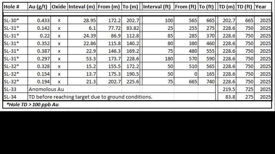 John Watson, NV Gold's CEO commented - "The Slumber Project continues to expand with our work in 2025. Hole SL 30 was drilled 1.7 km north of our previous drilling and hole SL 31 was completed 0.33 km north. Both holes returned highly encouraging intercepts of gold mineralization and both bottomed in grade. The 2025 Program results suggest that the oxide gold system is much larger than previously established, with potential to be a major discovery."