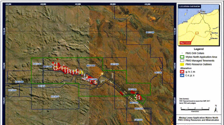 FMG Pilbara Pty Ltd ("FMGP") Ltd, which is a subsidiary of Fortescue, is the operator of the key Wyloo North mining lease M47/1567 (formerly M47/1488, M47/1489, M47/1490, M47/1508, E47/1395 and E47/1650), which is part of a package of tenements collectively known as the Wyloo North Project. Exploration mapping and drilling have been carried out on the project area since mid-2006 and through the results of that drilling, FMGP has identified significant iron ore mineralization within the tenement boundaries. During 2006 through to 2016, FMGP conducted extensive mapping programmes throughout the Wyloo North project. From the mapping focusing on the Marra Mamba and Brockman Iron Formation bedrock, areas of mineralization were identified for Reverse Circulation ("RC") drilling to test for bedded iron deposits and detrital iron deposits.