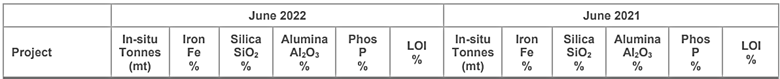 Table 1 - Wyloo North Mineral Resource within Greater Western Hub (June 2022)