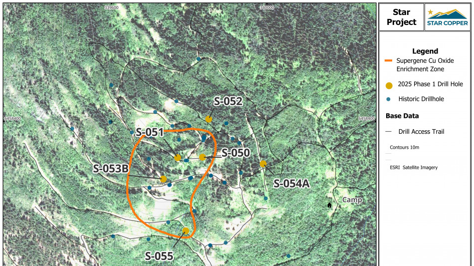 Company CEO, Darryl Jones notes, "Our phase 1 six-hole drill program successfully confirmed copper mineralization in multiple intrusive phases, refined structural and alteration models including potassic halos and supergene enrichment, and expanded the supergene mineralized footprint at the Star Main zone up to 250m x 300m. With momentum building, Phase 2 is planned for fall 2025 and will pursue targeted step-outs and deeper tests at Star Main while adding exploratory holes at Star North and Copper Creek to expand the copper footprint and unlock new discovery potential across the property. Star Copper looks forward to sharing Phase 1 results and launching the next phase of growth at our increasingly intriguing Star Project.