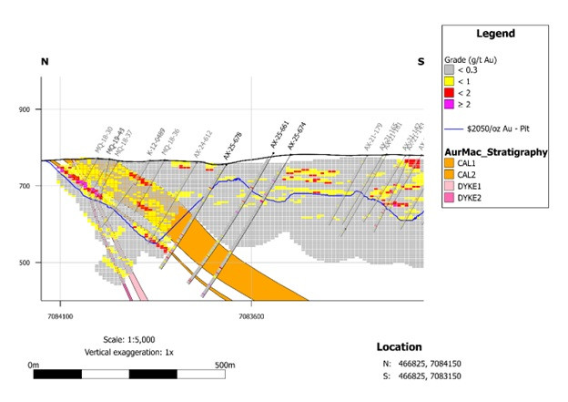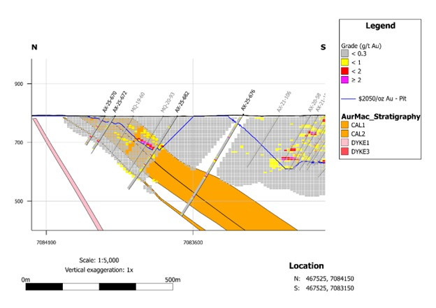 "These results continue to define higher grade zones ( +1 g/t material) at AurMac," stated Tara Christie, President and CEO. "While visible Gold is frequent in Powerline deposit style mineralization, the presence of visible gold in sheeted veins in close association with skarn mineralization in drillhole AX-25-678 at Airstrip highlights the continued potential for high-grade mineralization throughout the system. After intersecting some of the most enriched mineralization at Airstrip to date, AX-25-650 intersected 3.95 g/t Au over 38.1m (see News Release dated June 25, 2025), we continue to trace high-grade near-surface mineralization along strike and up-dip. Today's drill results highlight the potential to expand the footprint of Airstrip mineralization East and West, and also down dip and between the two deposits at AurMac."