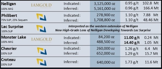 [2] "lAMGOLD Announces Significant Increase in Nelligan Ounces & Update of Global Mineral Reserves and Resources"; IAMGOLD reports increase in mineral reserves and resources at existing assets, with increase in resources at Gosselin; IAMGOLD Corporation News Release dated February 15, 2024, October 23, 2024, and February 20, 2025. Note that the technical and scientific information disclosed from neighboring properties does not apply to any other properties of the area.