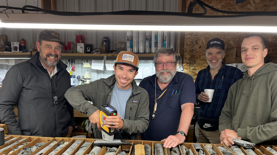 Figure 10: Dr. Danie Grobler, Stillwater's Vice-President of Exploration, Chris Jenkins and Mike Zientek from U.S. Geological Survey, Dr. Wolfgang Maier, ultramafic expert from Cardiff University, and Rory Johnson, Stillwater geologist, at the Stillwater West core shack in Montana, USA.