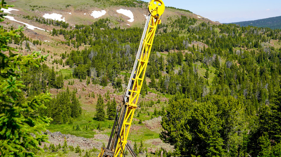 Figure 1: Drilling at the Iron Mountain deposit area of the Stillwater West project, over seven kilometers east of a second rig at the Chrome Mountain deposit area, in an iconic and historic mining district in Montana, USA.