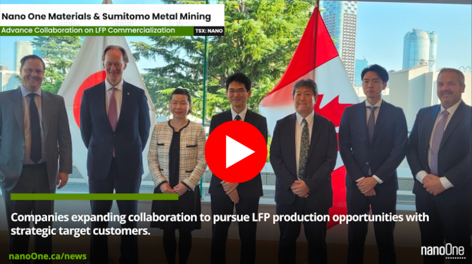Nano One and Sumitomo Metal Mining Advance Collaboration on LFP Commercialization