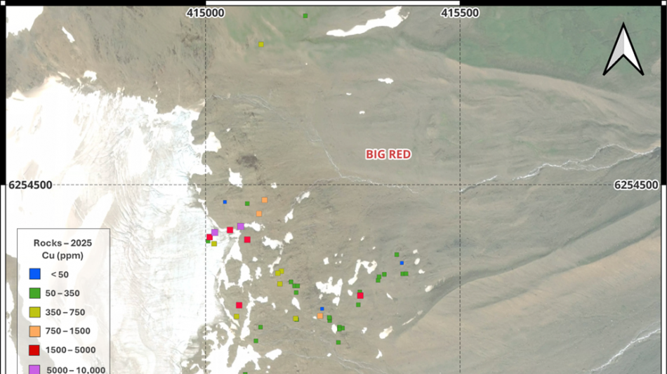 Figure 5. 2025 rock sample assays for copper from the Big Red zone.