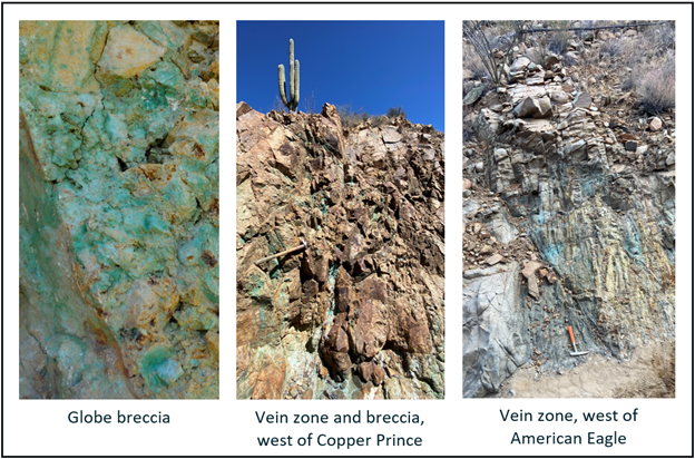 Supergene copper oxide and secondary sulphide mineralization occurs in the uppermost 20 m to 40 m at Copper Creek and a resource 1 has been previously defined in breccias northwest of the American Eagle area. Recent Phase III drilling has highlighted the potential for expanding the oxide resource through shallow, low angle drilling. Copper oxide minerals and anomalous copper in iron oxides, which formed after oxidation of primary sulphide mineralization, have been widely documented beyond the known resource, including in the American Eagle area (Figures 2 and 3). Copper oxide provides the opportunity to generate early cash flow through low-cost, heap-leach copper recovery. Approximately 10,000 m of drilling is allocated to oxide resource growth.