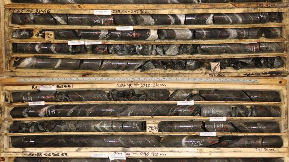 Figure 3 - Drill core from hole RY-25-06, between 275.48 and 301.33 m, where the average measured sheeted vein density is >15 per metre