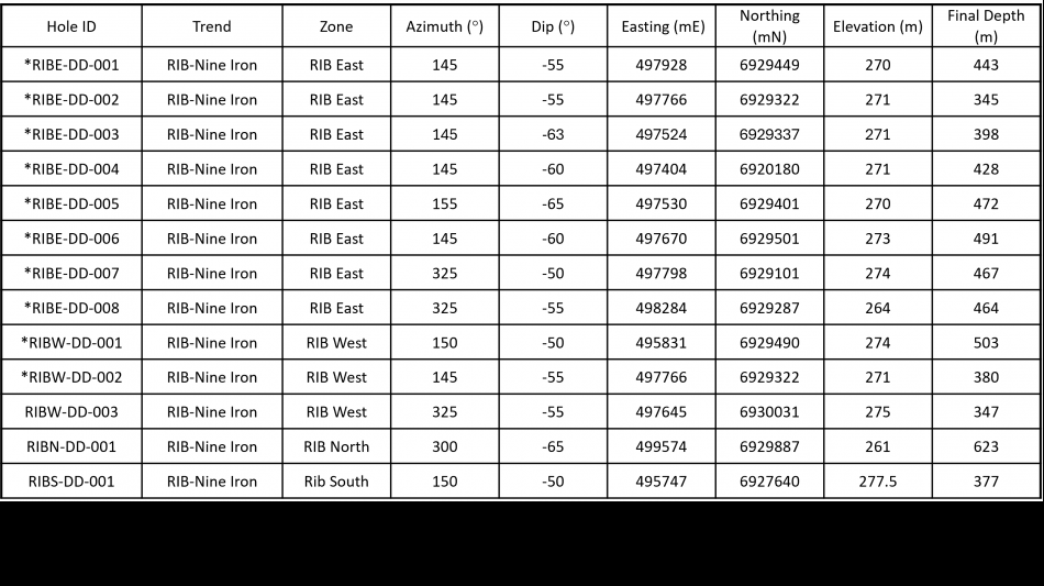 Major new discovery within the Mineralized RIB Corridor ("MRC"), the RIB North Discovery, located ~1.4 km along strike from the nearest drillhole at the RIB East Discovery (Figures 1 & 2);