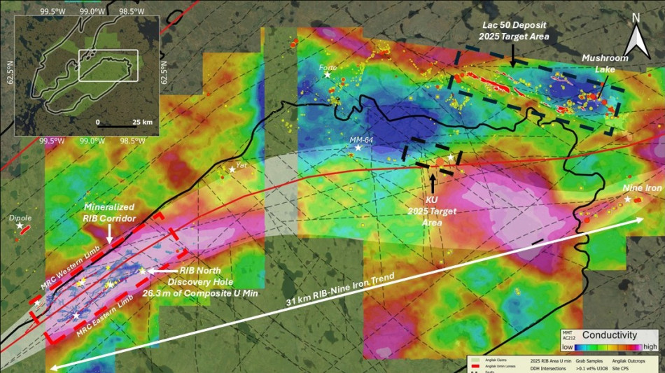 Cliff Revering, VP Exploration added: "We continue to see compelling evidence of the immense potential within the RIB regional target area. Our team has now discovered uranium mineralization across a 12 km graphitic structural corridor, and the results from the first RIB North drillhole, located over 1.4 km away from the nearest drilling, demonstrate impressive scale and continuity. These results highlight how our technical team is successfully translating a robust targeting strategy into meaningful new discoveries and set us up for a very exciting year ahead. Our thesis that the Angikuni Basin is an emerging new uranium district with substantial scale potential is steadily being validated."