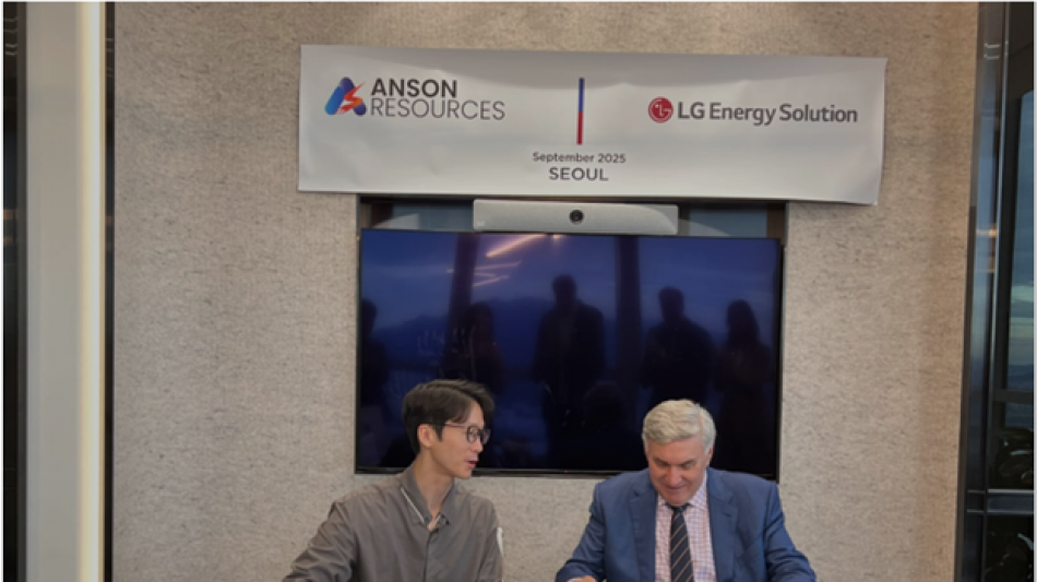 "Anson is delighted to have concluded our definitive offtake agreement with LG Energy Solution for at least 40% of our production. LG Energy Solution not only has a diversified customer base of tier one OEM's they also have many energy storage solutions (ESS) customers.