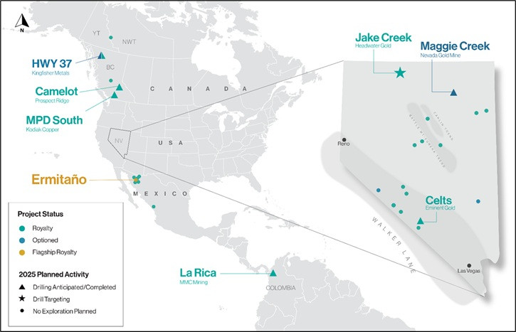 La Rica, porphyry copper-gold project, Colombia. MCC Mining Inc. (private) ("MCC") completed an oversubscribed US$75.0 million financing during H1-2025 to support exploration activities on their projects.12 While most exploration has focused on MCC's Comita and Pantanos deposits, drilling is anticipated to occur on La Rica late 2025 or early 2026. Orogen holds a 1% NSR royalty on the La Rica project, subject to a 0.5% buydown for up to US$15.0 million.