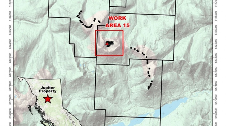 Additional work performed on the Jupiter Claim Block included three east-west oriented soil lines south of the cirque basin, 25 B-horizon soil samples together with silt and rock samples were collected. The area traversed in phase 2, referred to as "Work Area 15" contains outcrops of phyllite, which host numerous quartz veins.