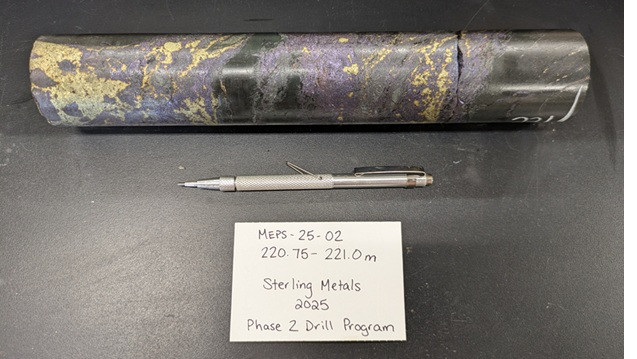 TORONTO, ON / ACCESS Newswire / September 29, 2025 / Sterling Metals Corp. (TSXV:SAG)(OTCQB:SAGGF) ("Sterling" or the "Company") is pleased to announce the discovery of a high-grade copper zone at its Soo Copper Project ("Soo Copper" or the "Project") located in Batchewana Bay, Ontario. Drill hole MEPS-25-02, part of the Company's Phase 2 exploration program, discovered a high-grade copper and gold zone within a continuous, bulk-tonnage copper-molybdenum-silver-gold porphyry system (Figure 5).