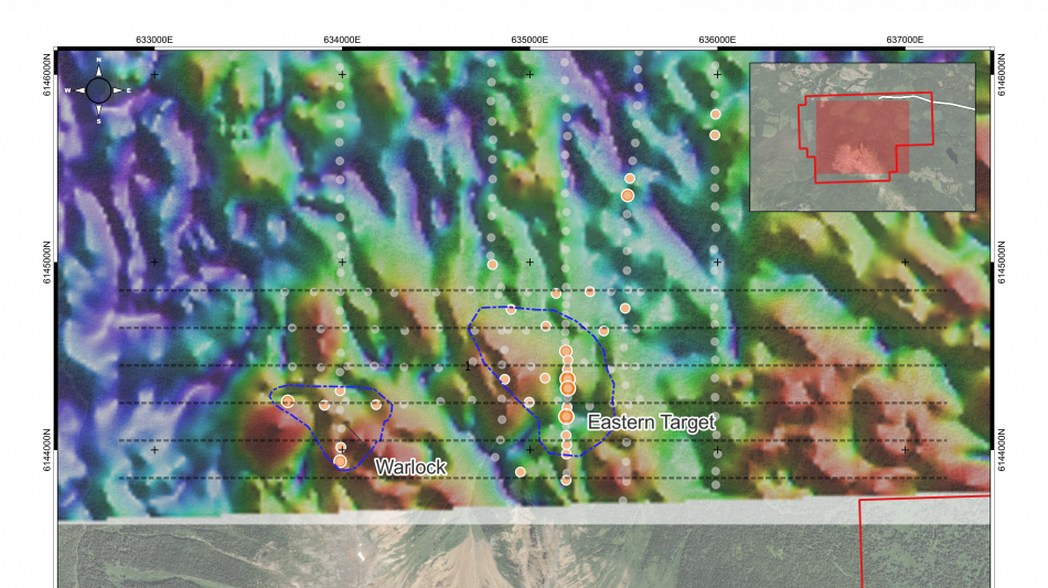 Equity and subcontractors have completed a ~7 line-km IP survey over the Castle gossan as well as prospecting and mapping over both the Castle and Abbey gossans, with 62 rock samples collected and sent for assay with results pending. Preliminary prospecting results have identified a pronounced boulder train of massive magnetite ±actinolite as well as a series of anastomosing magnetite veins, potentially indicative of a buried alkalic porphyry downslope of the Castle gossan. A 500 line-kilometre airborne magnetic survey over the entire Project was completed on October 1. Portions of the survey over the Castle gossan were re-run at 50 m (rather than at originally planned 100 m line spacing) to provide better resolution due to its very pronounced magnetic signature. The Company is eagerly awaiting results from rock sampling, IP, and aerial magnetic surveys, as these results may help determine the potential size and scope of a drill program in 2026, subject to drill permitting.