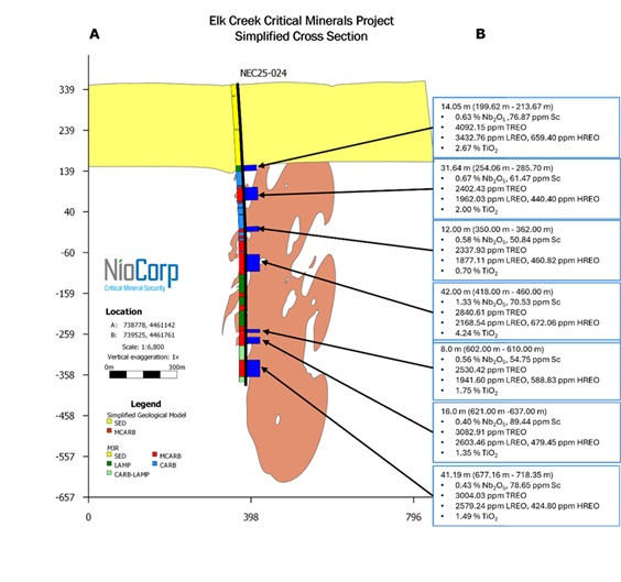 "We appreciate the Pentagon's continued partnership in advancing this important work," said Mark A. Smith, CEO and Chairman of NioCorp. "These results are consistent with the existing Mineral Resource model for the Elk Creek deposit along with the lithologies logged by the field geology team when the hole was drilled, and confirm that the deposit is well understood. We look forward to receiving the remaining assay results, completing updates to our Mineral Resources and Mineral Reserves and continuing our discussions with EXIM Bank as we work to advance financing efforts for the Elk Creek Project."