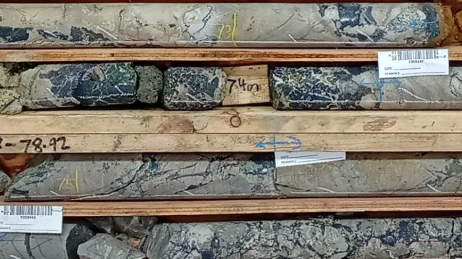 2.3m @ 4.6% Cu, 21.8g/t Ag from 78.1m downhole