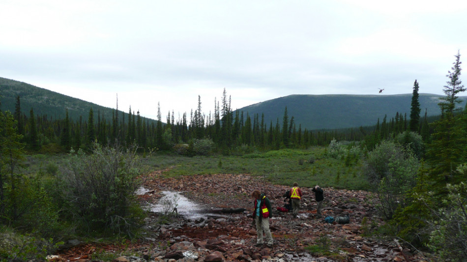 Rusty Springs Property is located in Yukon, Canada about 8 km south of the Arctic Circle and 29 km east of the Alaska border. Access is by wheel/ski-equipped aircraft or by winter road. The great extent of mineralized and altered rocks, stratabound nature and common significant thicknesses, high grades and potential for supergene enrichment make Rusty Springs an attractive target for large-tonnage base and precious-metal deposits. Rusty Springs was discovered in 1975 after investigation of the deep red-orange springs and seeps in the valley of Carrol Creek led to the discovery of nearby Ag, Pb, Zn, and Cu mineralization. The property hosts silver-lead-zinc mineralization associated with a 25-40m thick replacement horizon within carbonate rocks. Some 35 showings are present within the property area and consist of both high-grade vein occurrences and replacement mineralization.