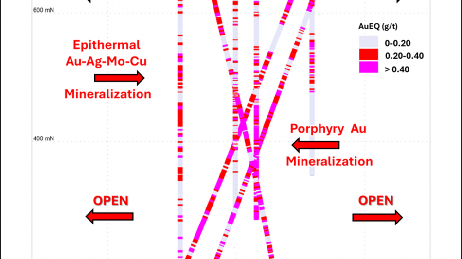 315 m grading 0.39 g/t Au, 14 g/t Ag, 0.018% Mo and 0.04% Cu (0.73 g/t AuEQ)