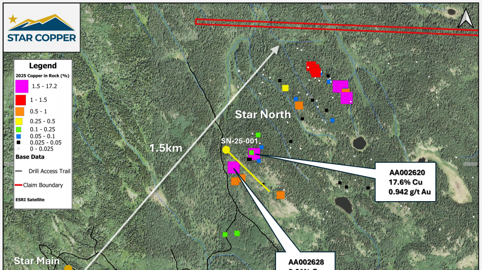 VANCOUVER, BC / ACCESS Newswire / November 4, 2025 / Star Copper Corp. (CSE:STCU)(OTCQX:STCUF)(FWB:SOP) ("Star Copper" or the "Company"), a critical minerals exploration and development company is pleased to announce drilling is underway on the inaugural hole on the Star North target, located 1 km northeast of the Star Main project area.