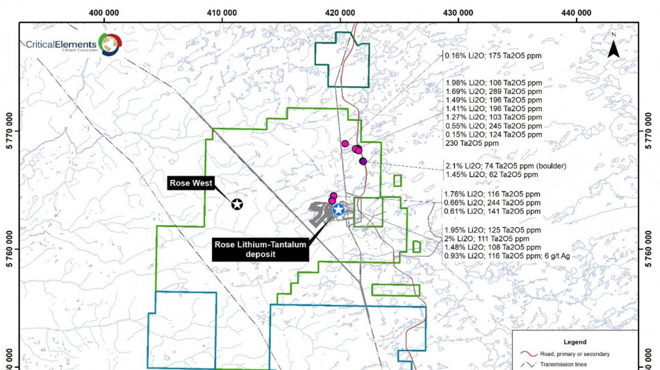 Critical Elements aspires to become a large, responsible supplier of lithium to the flourishing electric vehicle and energy storage system industries. To this end, Critical Elements is advancing the wholly-owned, high-purity Rose Lithium-Tantalum project in Québec, the Corporation's first lithium project to be advanced within a land portfolio of over 1,016 km2. On August 29, 2023, the Corporation announced results of a new Feasibility Study on Rose for the production of spodumene concentrate. The after-tax internal rate of return for the Project is estimated at 65.7%, with an estimated after-tax net present value of US$2.2B at an 8% discount rate. In the Corporation's view, Québec is strategically well-positioned for US and EU markets and boasts good infrastructure including a low-cost, low-carbon power grid featuring 94% hydroelectricity. The project has received approval from the Federal Minister of Environment and Climate Change on the recommendation of the Joint Assessment Committee, comprised of representatives from the Impact Assessment Agency of Canada and the Cree Nation Government, received the Certificate of Authorization under the Environment Quality Act from the Québec Minister of the Environment, the Fight against Climate Change, Wildlife and Parks, and the project mining lease from the Québec Minister of Natural Resources and Forests under the Québec Mining Act.