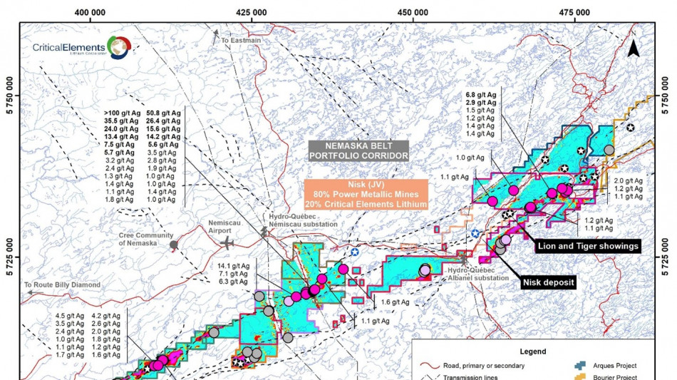 Interest in high-grade nickel-copper-PGE mineralization in the region has increased with the exploration success of Power Metallic Mines Inc. ("Power Metallic"), formerly Chilean Metals Inc. Critical Elements optioned the Nisk Property to Power Metallic in 2020 (see press release dated December 23, 2020). Following the exercise of the option agreement by Power Metallic on the Property hosting the Ni-Cu-PGE Nisk deposit and the new polymetallic Lion discovery, Critical Elements retains a non-dilutive interest of 20% until a definitive feasibility study regarding extraction and production activities is completed on the Nisk property. Critical Elements also held just over 10 million shares of Power Metallic as of May 31, 2025 (Condensed Interim Financial Statements for the nine-month period ending May 31, 2025).