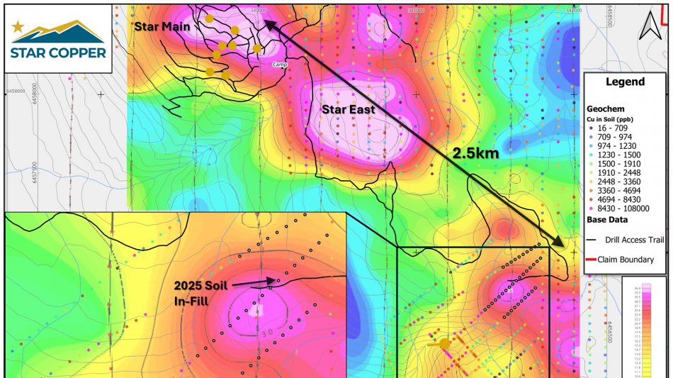 VANCOUVER, BC / ACCESS Newswire / November 11, 2025 / Star Copper Corp. (CSE:STCU)(OTCQX:STCUF)(FWB:SOP) ("Star Copper" or the "Company"), a critical minerals exploration and development company is pleased to announce that during 2025, Star Copper advanced the Copper Creek satellite target located 2.5 km southeast of Star Main from concept to drill-ready (see Figure 1).
