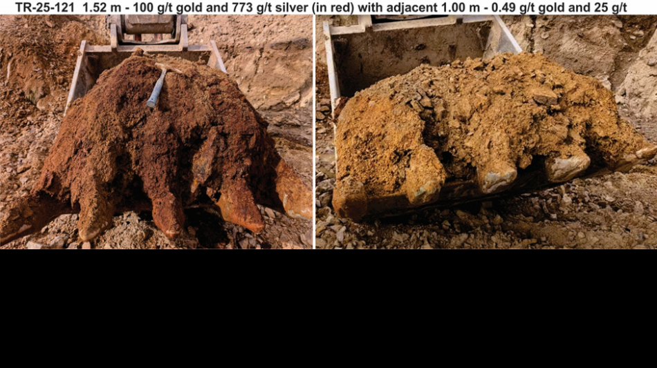 100 g/t gold and 773 g/t silver over 1.52 m (TR-25-121)