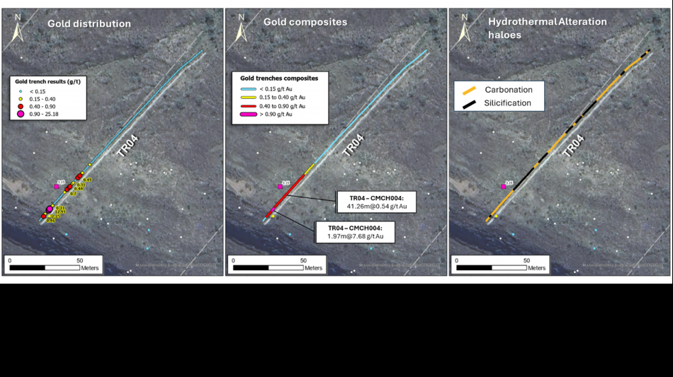 CMCH06: 24.78m @ 0.41 g/t Au, including 11.39m @ 0.50 g/t Au, and 12.94m @ 0.52 g/t Au