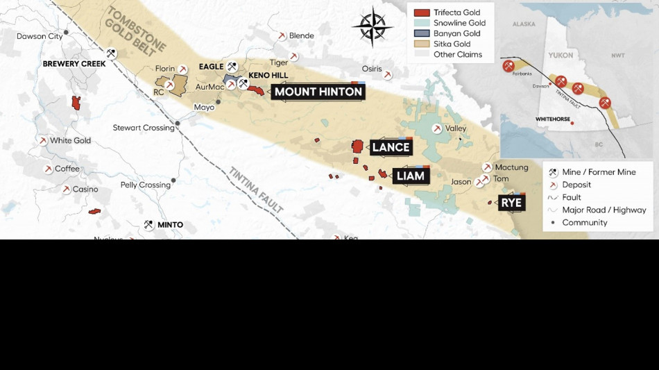 Trifecta is a Canadian-based precious metals exploration company dedicated to increasing shareholder value through the discovery and development of 100% held gold projects in Yukon and Nevada. Trifecta has secured an option to acquire a 100% interest in Mt. Hinton, Rye and 9 other highly prospective, intrusion-related gold projects located in Yukon's Tombstone Gold Belt where over 17 million ounces of gold have been discovered since May 2020. Initial drilling at the Company's Yuge Gold Project, located in northern Nevada, has identified multiple broad zones of gold mineralization near historical high-grade mines. The Company's Eureka Project hosts an 8 x 2.5 kilometre belt of surface showings and anomalous gold-in-soil that straddle the headwaters of two of the most productive placer creeks in Yukon's southern Klondike Goldfields. Trifecta's Treble Project covers a large hydrothermal system, located midway between Western Copper and Gold Corporation's Casino Deposit, the largest copper and gold deposit in the Yukon, and Rockhaven Resources Ltd.'s Klaza Deposit, a high-grade gold-silver deposit.