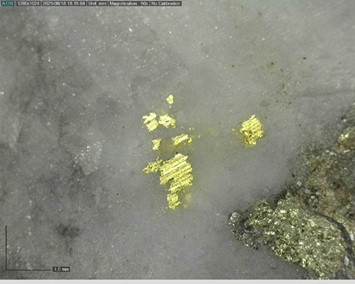 Gold mineralization in southwest Powerline is consistent with mineralization seen in the core of Powerline; gold mineralization is associated with discordant sheeted quartz veins hosting sulphosalts and sulphides (predominantly sphalerite, arsenopyrite) (Figure 3) which is preferentially hosted in silicified/altered host rocks.