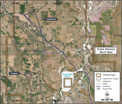 Located within the Mid-West region of Western Australia, near the northern wheatbelt town of Three Springs, the Pitfield titanium project lies 313 km north of Perth and 156 km southeast of Geraldton, the Mid-West region's capital and major port. The Company has now signed a non-binding co-operation agreement with the Mid West Ports Authority, enabling formal discussions regarding future port access and use of port facilities.